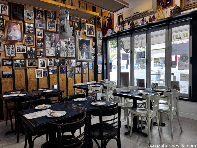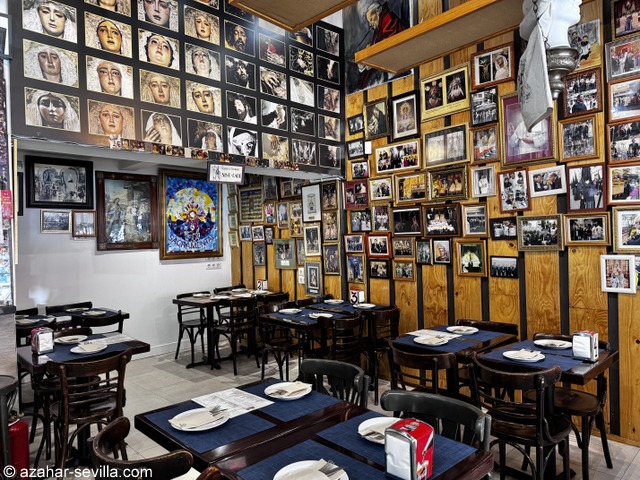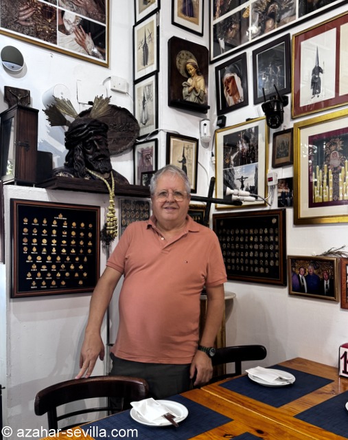 When the bar next door to his well-known Cafetería Donald became available in 2021, Mariano García didn’t hesitate. He immediately saw how well this location would work in tandem as a sister bar, especially with the ample sidewalk terrace and large windows that open onto the street. But rather than just open “Donald 2” he gave his new bar a unique personality, creating a space with a special “ambiente cofrade”, something close to his heart. Little by little the walls were filled with Semana Santa memorabilia, much of it donated to the bar by friends and various hermandades (brotherhoods) in the city.